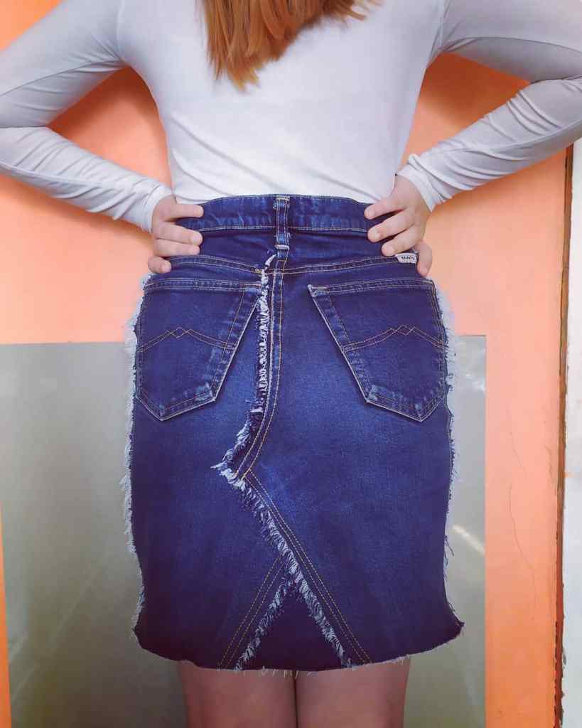Эта джинсовая юбка результат переделки джинсов, которые стали маловаты.