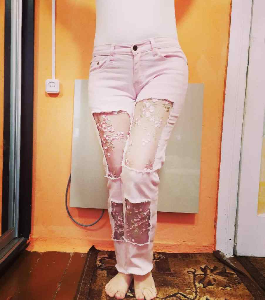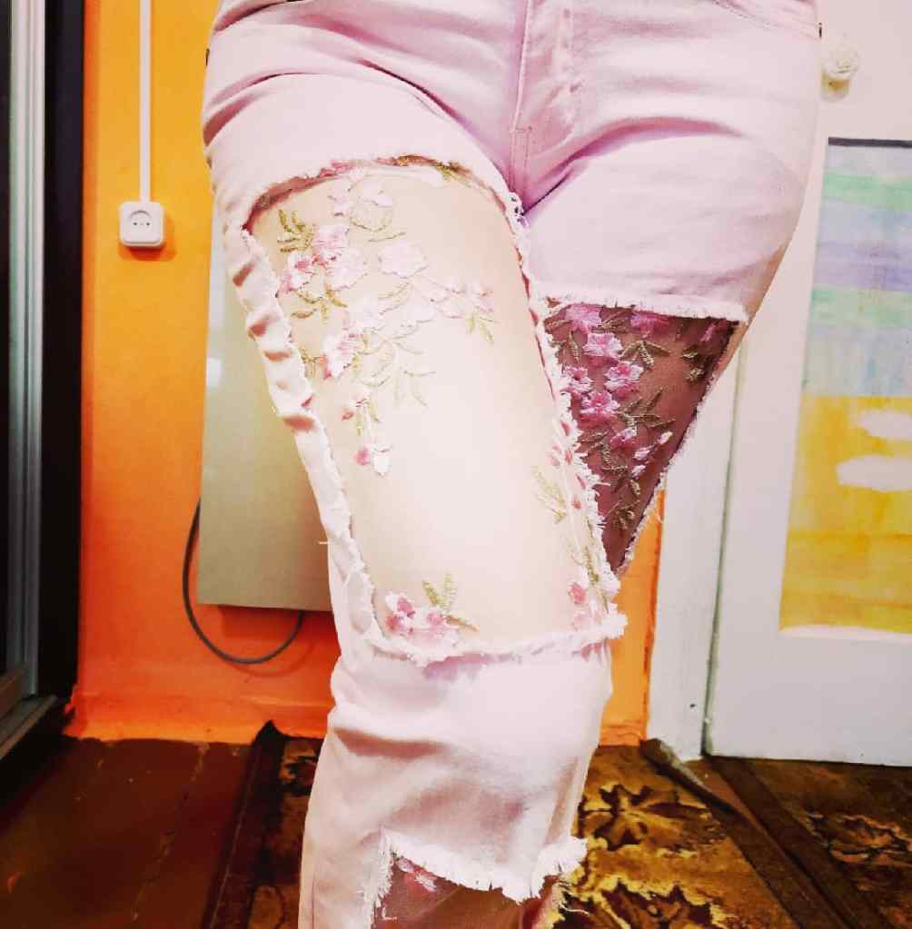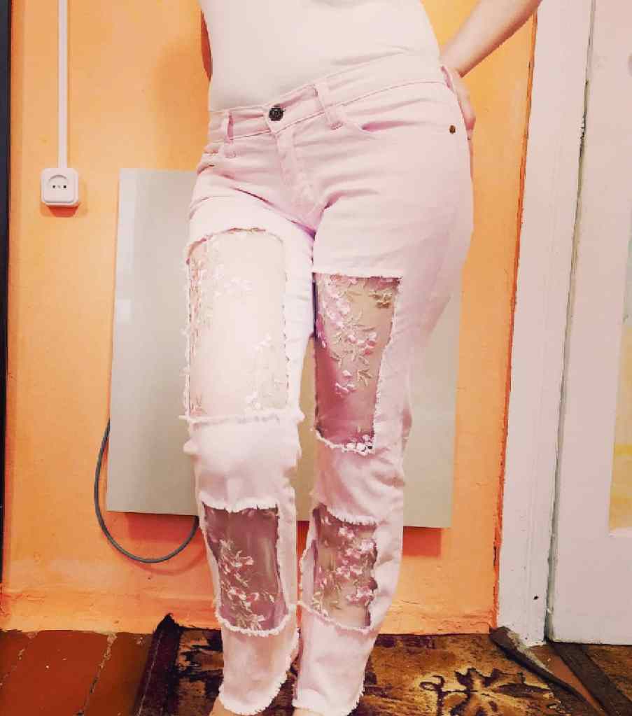 Джинсы были куплены недавно, мелкая сеточка с вышивкой больше месяца назад.